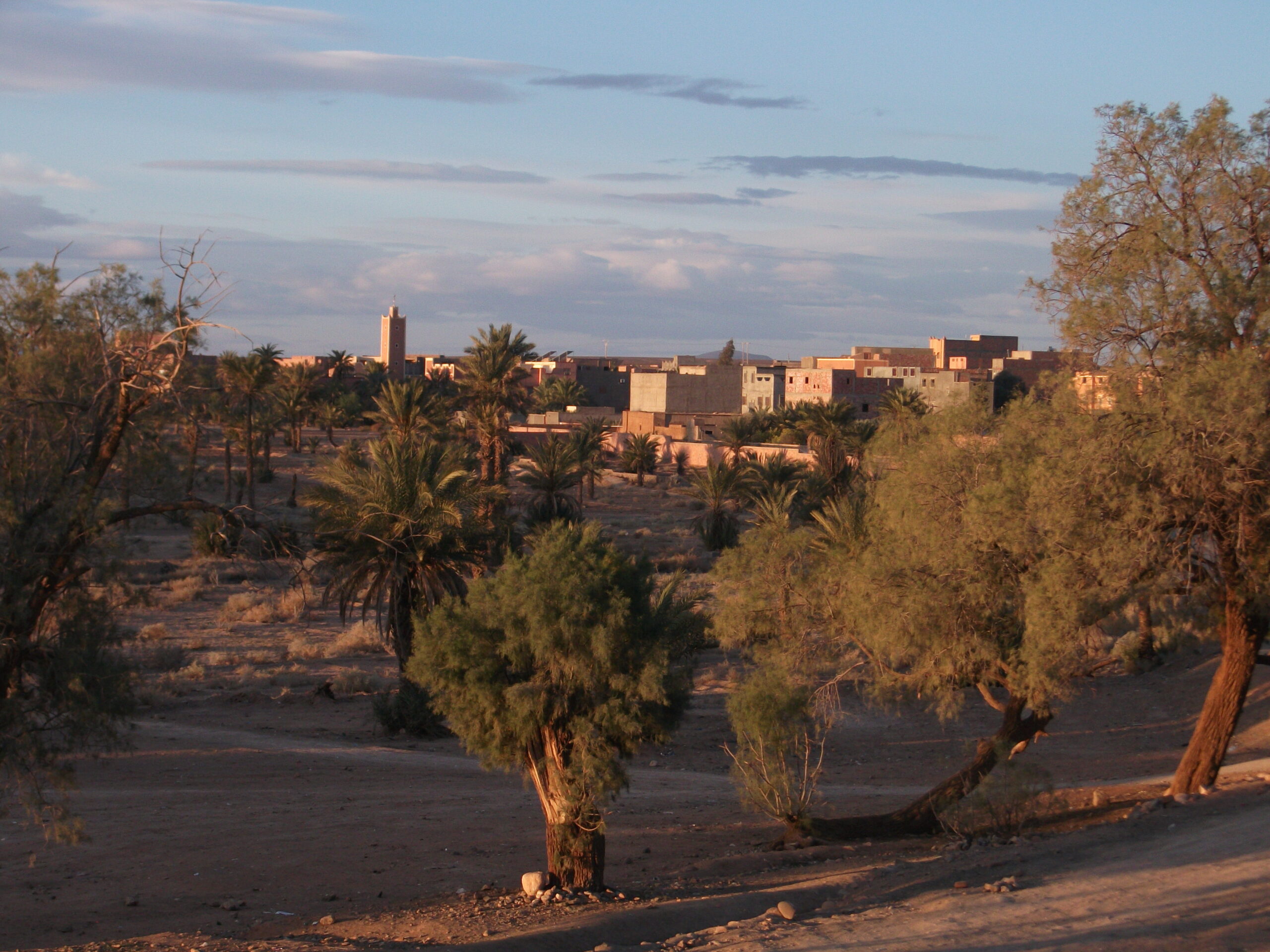 Opcionalmente e se as nuvens o permitirem, teremos a oportunidade de contemplar o belo espetáculo do nascer do sol sobre o mar de dunas. Após o café da manhã seguiremos para Rissani. Situada a 22 km de Erfud, num palmeiral, Rissani atraitanto pelo seu ambiente como pela sua história e possui vários monumentos de interesse. É considerada herdeira da mítica Sidjilmasa, antiga capital de Tafilalet. Continuação para Al Nif, ao longo do caminho poderemos observar manadas de dromedários selvagens e uma impressionante paisagem semi-lunar. Chegada a Agdez e posteriormente a Ouarzazate. Acomodação. Jantar.